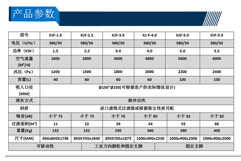 产品名称:KJF-3.0系列大风量脉冲反吹工业集尘器