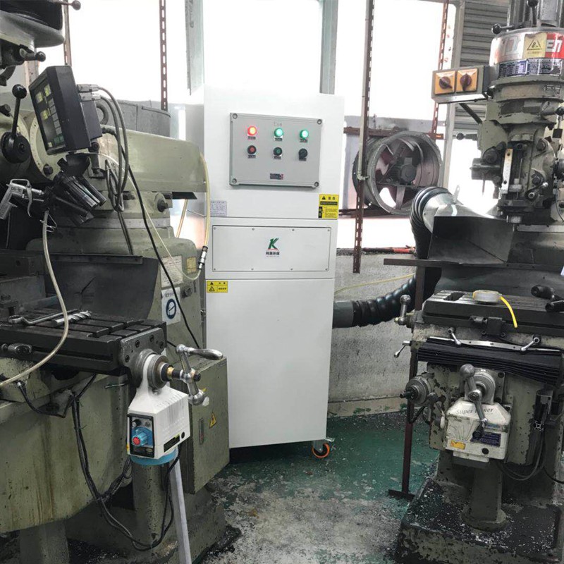 数控机床行业问题及解决方案铣床是一种用途广泛的机床,在铣床上可以加工平面(水平面、垂直面)、沟槽(键槽、T形槽、燕尾槽等)、分齿零件(齿轮、花键轴、链轮)、螺旋形表面(螺纹、螺旋槽)及各种曲面。此外,还可用于对回转体表面、内孔加工及进行切断工作等。简单来说,铣床可以对工件进行铣削、钻削和镗孔加工的机床。铣床在工作时,切削而掉的颗粒会随着钻头的高速旋转而随意飞溅。针对此类工况,可以在每个钻头侧边加一Φ150~Φ200左右的吸罩,配备合适的风速和主机,将粉尘颗粒收集处理。